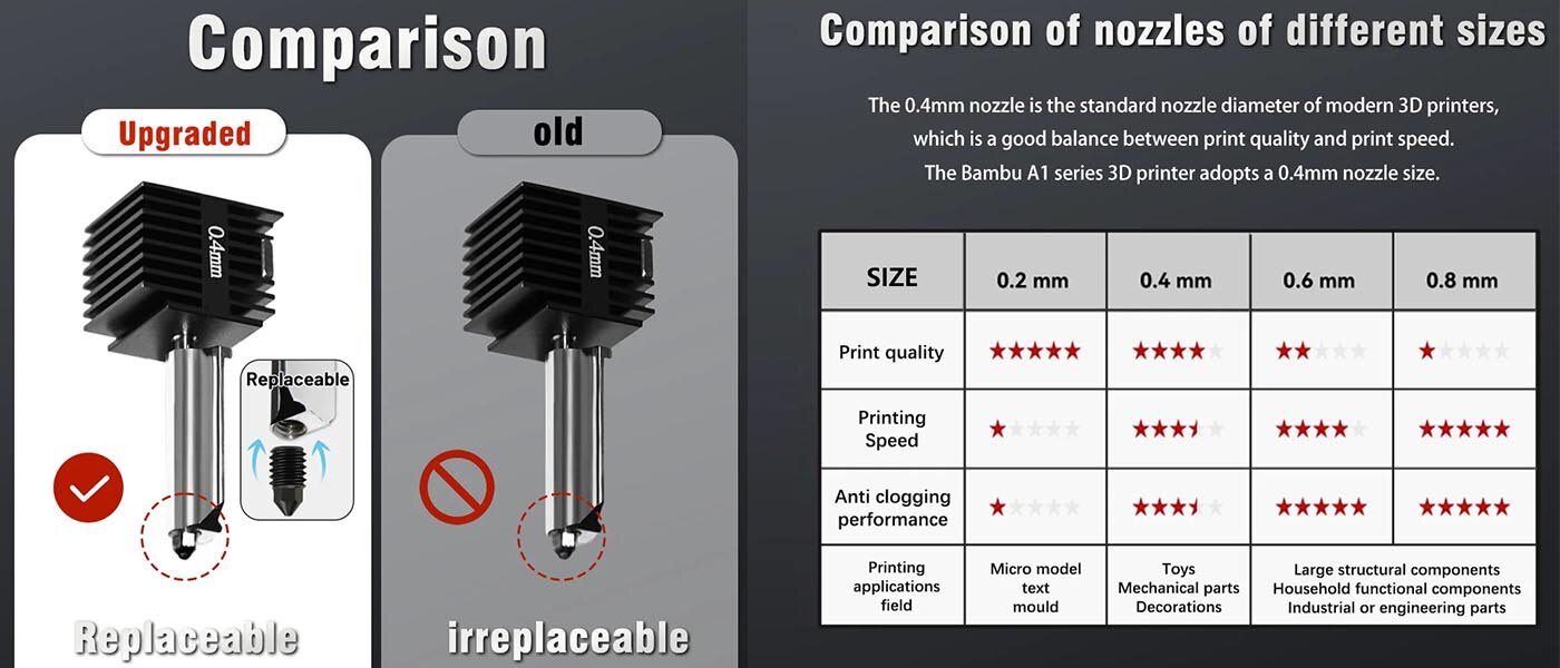 Bambu Lab Hotend Nozzle Неоригинален екструдер със сменяема дюза 0.4 А1 Series
