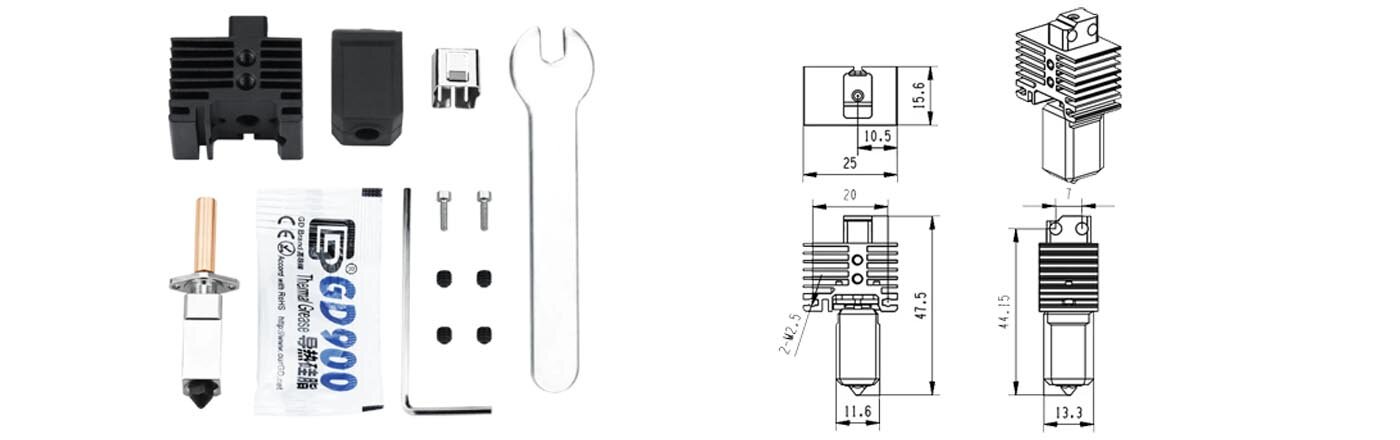 • Hotend-а е изцяло модулен и при запушване на дюза или блок/топлинен разделител, както и нарушаване на цялостта на някоя от частите му заменяте само нея.